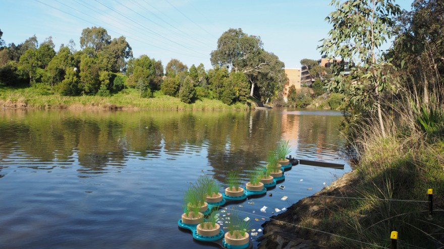 The planter pots contain endemic aquatic plants that form a floating bio-filtration system in the river. The roots of the aquatic sedge and rush plants grow under the water and create a healthy root network, which benefits the river’s ecosystem and provides a habitat for fish that nibble on the nutrient-rich shoots.