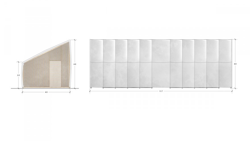 The proposed shelter would be made from locally sourced materials. It is an easily expandable, foldout structure that is also easy to transport. At 4 x 7.11 meters, the shelter is big enough to house 10 people once erected. But, once folded for transport the structure shrinks to 2.5 x 4 meters.