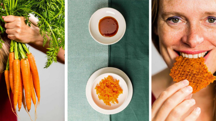 Chloé Rutzerveld is a critical food designer who experiments with new approaches to the way we cultivate and perceive food. She is a graduate of Eindhoven University of Technology. Fascinated by the strange relationships we form with food and how we eat, she investigates sustainable food production methods and animal-free sources. Now, she’s turned her attention to wastage (specifically in the vegetable industries) with STROOOP! It is a flat, sweet snack made purely out of veggie by-products.