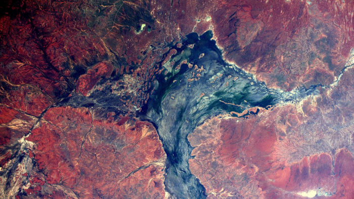 His photographs reveal the disparity between man-made and natural vistas as well as the weird similarity that emerges after looking at biology extremely closely and from afar. What may seem like a cluster of bacteria in a petri dish is actually a huge river ecosystem in Madagascar.