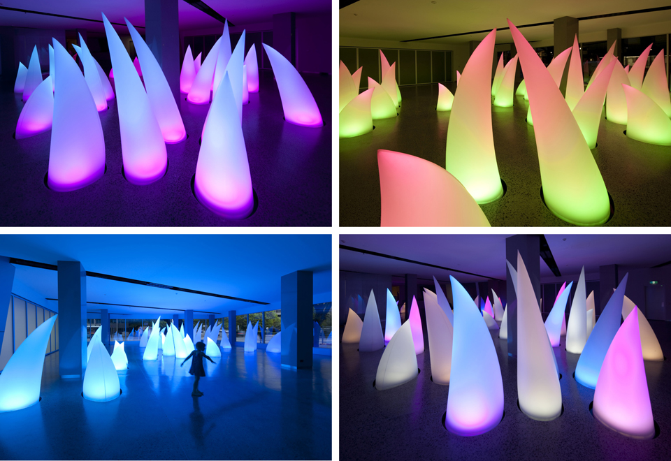 ActewAGL commisioned artist Robert Foster of Fink and Co. in collaboration with Frost*, to create a sculptural light installation for the foyer of its headquarters in Bunda Street, Canberra. Light filled shapes named "Ossalites" are programmed to create dramatic and interactive sequences of light, colour and movement throughout the installation.