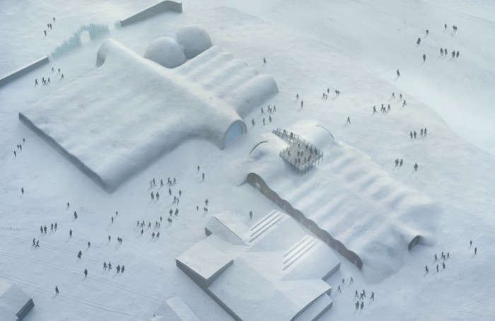 Although an architect has not yet been chosen to design the icy enclave, sketches depicting a sleek igloo-like building have been released. The hotel will include about 20 hotel suites, a bar and an art gallery and its design will change every year, in keeping with the tradition of the seasonal structures.