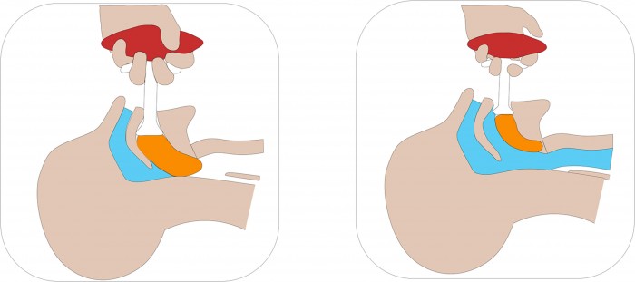When a person faints, the human body slackens and falls to the ground. When this happens the tongue slackens too and can get stuck in the throat. This blocks the air supply of the lungs and the person is at serious risk of suffocating. The Su first aid tool consists of a rubber bellows and a plastic tip. The compression of the bellows creates a vacuum, which sucks the tongue to the plastic tip, allowing the tongue to be pulled out of the way of the wind pipe easily and safely.