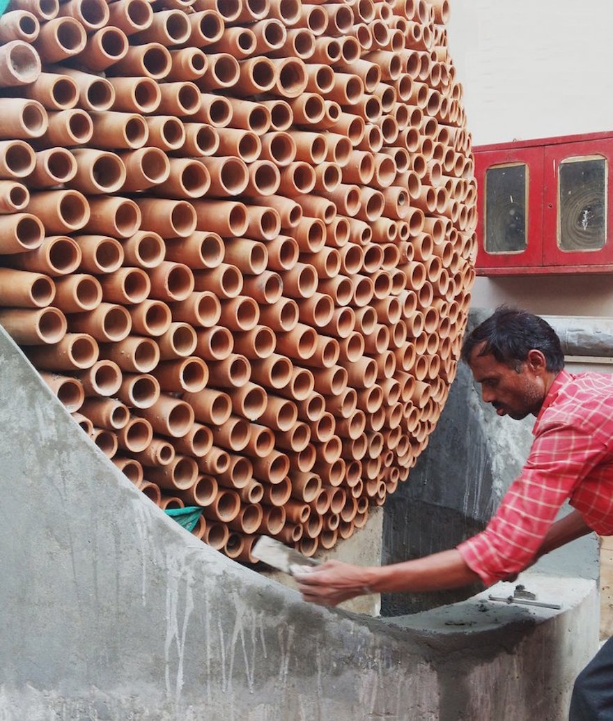 Determined using advanced computational analysis and modern calibration techniques, the terracotta pipes form a beautiful, beehive-inspired appearance when densely packed together.