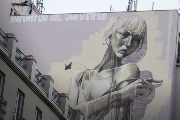 The mural is entitled Infinitud del Universo, translated as “Infinity of the Universe”. Faith47 created the mural for the Maus Málaga Urban Art Festival 2013 in collaboration with MAUS (Málaga Urban Art Soho), an artistic curatorial project that aims to transform the walls of the city. Other big names such as D'Face, Obey and ROA have collaborated to make their mark on the walls of Málaga as well.