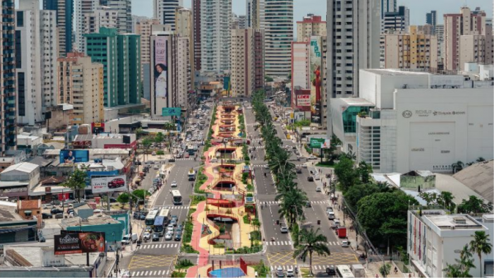 The design’s strength lies in its restraint, instead of imposing a heavy architectural footprint, Natureza Urbana embraces adaptable, lightweight structures that harmonise with the landscape. Layers of native vegetation and gentle terracing foster natural habitat formation and improve local microclimate conditions, softening the once-harsh concrete environment into a vibrant ecosystem for both people and ecology.