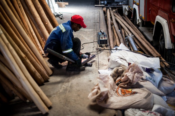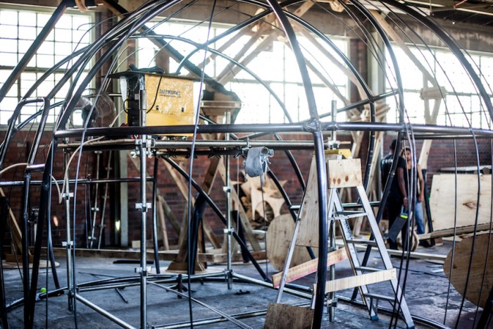 Raby Kane travelled to Ivory Coast to work with Ivorian artist and world-maker Paul Sika to sketch and conceptualise this dreamlike new look for the Artscape Piazza. For the last two months, artist Bassirou Wade (who helped create Raby Kane’s Alien Cartoon) and painter Monsour Bah from Dakar, Senegal have joined forces with a local team of Cape Town creatives, builders and welders from Dimensions Tents and Structures in their local workshop space.