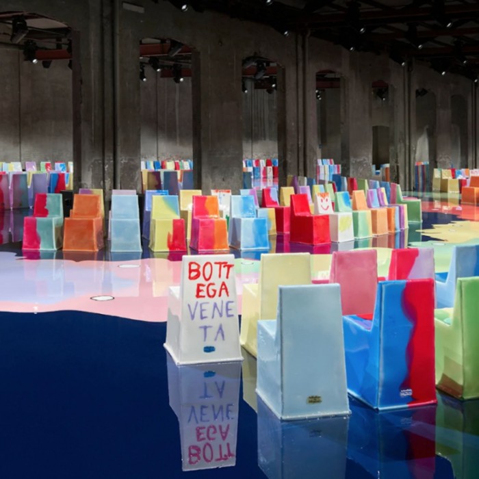 The Come Stai? chair exhibition is a creative collaboration between Bottega Veneta and designer Gaetano Pesce. Commissioned for the brand’s Summer 23 fashion show, the chairs are alike in material but unique in colour and form, celebrating variation and diversity.