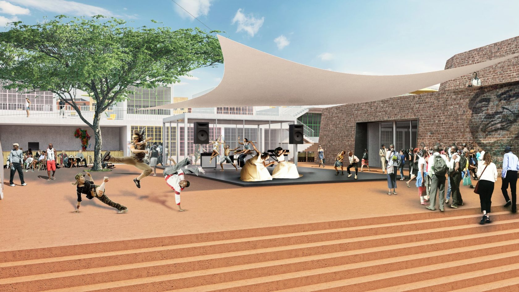Organised around three courtyard levels, the new building will significantly expand the centre’s role as an open, accessible community space for Kenyans. Able to accommodate hundreds of visitors, the main courtyard will include a corner for children, art activity and play, as well as an exhibition space, library, auditorium, and museum. The auditorium will form the focal point of the main courtyard, while a grand staircase will lead upwards to a second courtyard of dance rehearsal and creative studio spaces.