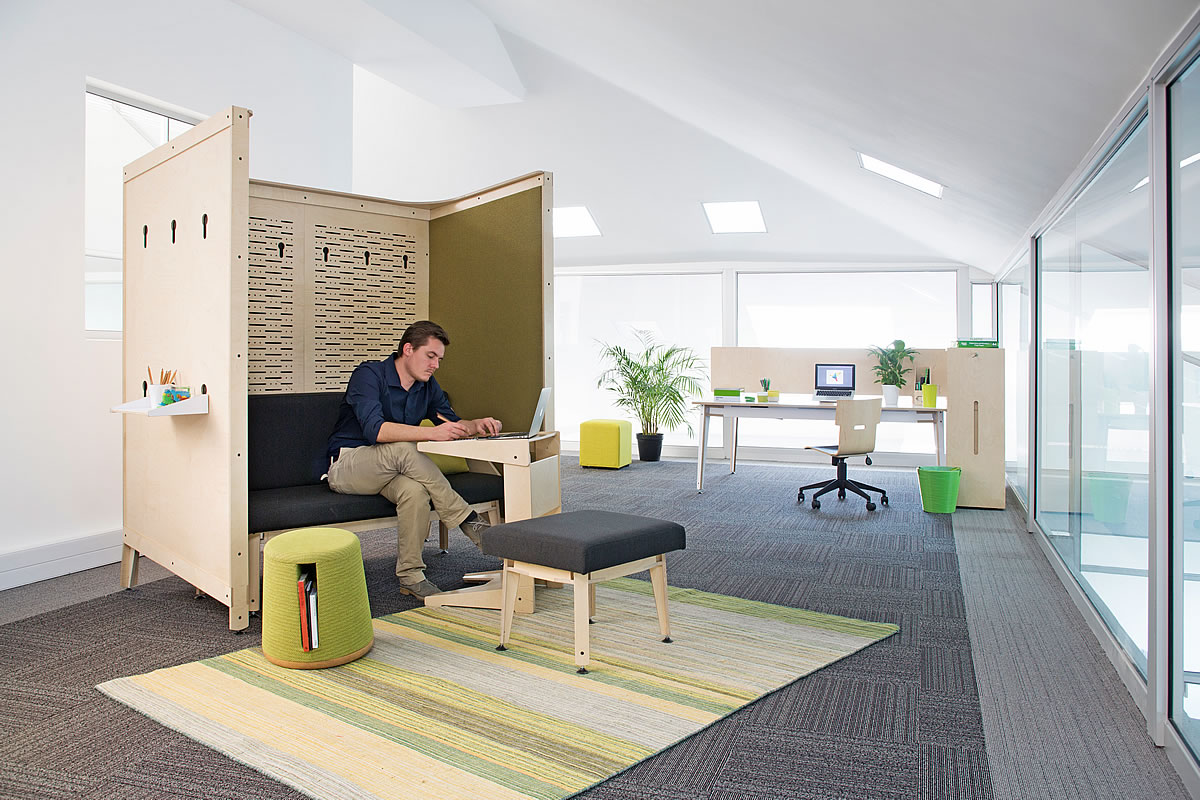 The pods are comfortable and have special acoustic properties that “suck up sound”. They can be configured as individual work spaces, quiet study areas and collaborative areas.