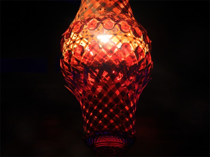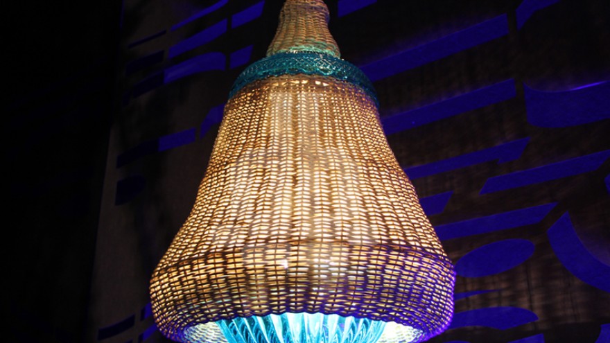 Fusion comprises five lights; small table lamps, pendant lamps and a chandelier. Made from natural bamboo or wicker, the Campana brothers handcrafted each lamp using weaving and plaiting techniques to create each of the five delicate lampshades. Each shade is complemented by an array of colourful crystal elements, which brighten up the lamp while reflecting precious patterns.