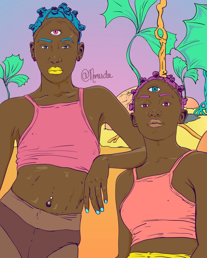Naomi Doras is a digital artist who creates visuals where black girl magic and Afrofuturism meet. Known as Nomes Dee, the creative graphic illustrator works out of Lusaka, combining her Zambian heritage with Japanese anime and global pop culture.