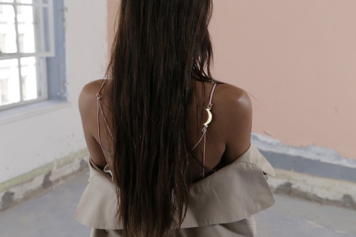 The result is a collection made up of dusty pinks, soft sand colours, black and white offset by gold wrapping and polished metals. Pieces such as the Mithra pendant and Anahita choker and cuff evoke the feminine qualities that have become a hallmark of PICHULIK’s designs: grace, wisdom, compassion as well as fierce strength. PICHULIK’s ropework features too, this time as simple knots in the chokers and bracelets.