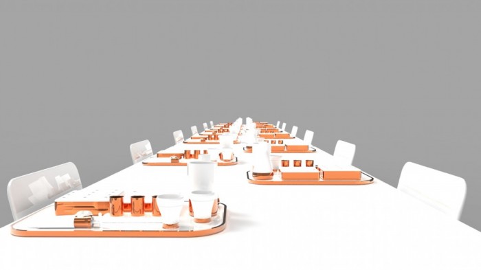 Made of porcelain with copper detailing, the utensils in the Eating Objects range provides the tools with which to start experimenting with techniques like “spherification” and “gelling”. To make it easier for first time gastronomists, Designgoat also created a table equipped with recognition technology. When a diner picks up a tool to use in their culinary creation, animations are projected onto the table’s underside, helping the new gastronomic explorer through the process of making a unique dish.