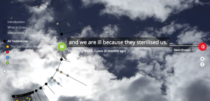 The victims were almost exclusively indigenous people living in the rural areas of Peru with no media representation and a language barrier that meant their cries for help would go unheard. Now, an interactive documentary platform called the Quipu project has established an online archive to document the testimony of thousands of women and men who suffered in silence for almost two decades.