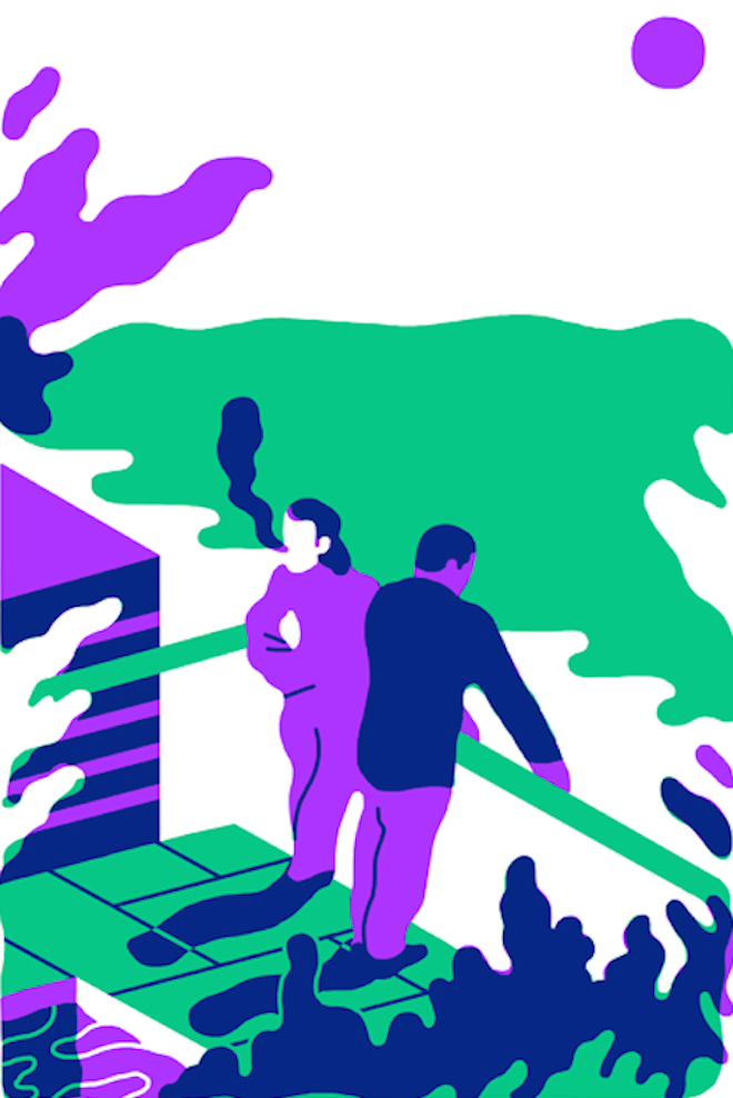 A recent graduate with honours in illustration from Edinburgh College of Art, Atkinson’s eye-popping visuals are created using stark colour contrasts and simple forms. He strips down his illustrations to the minimum, leaving only the characters, their expressive faces and bright acid palette.