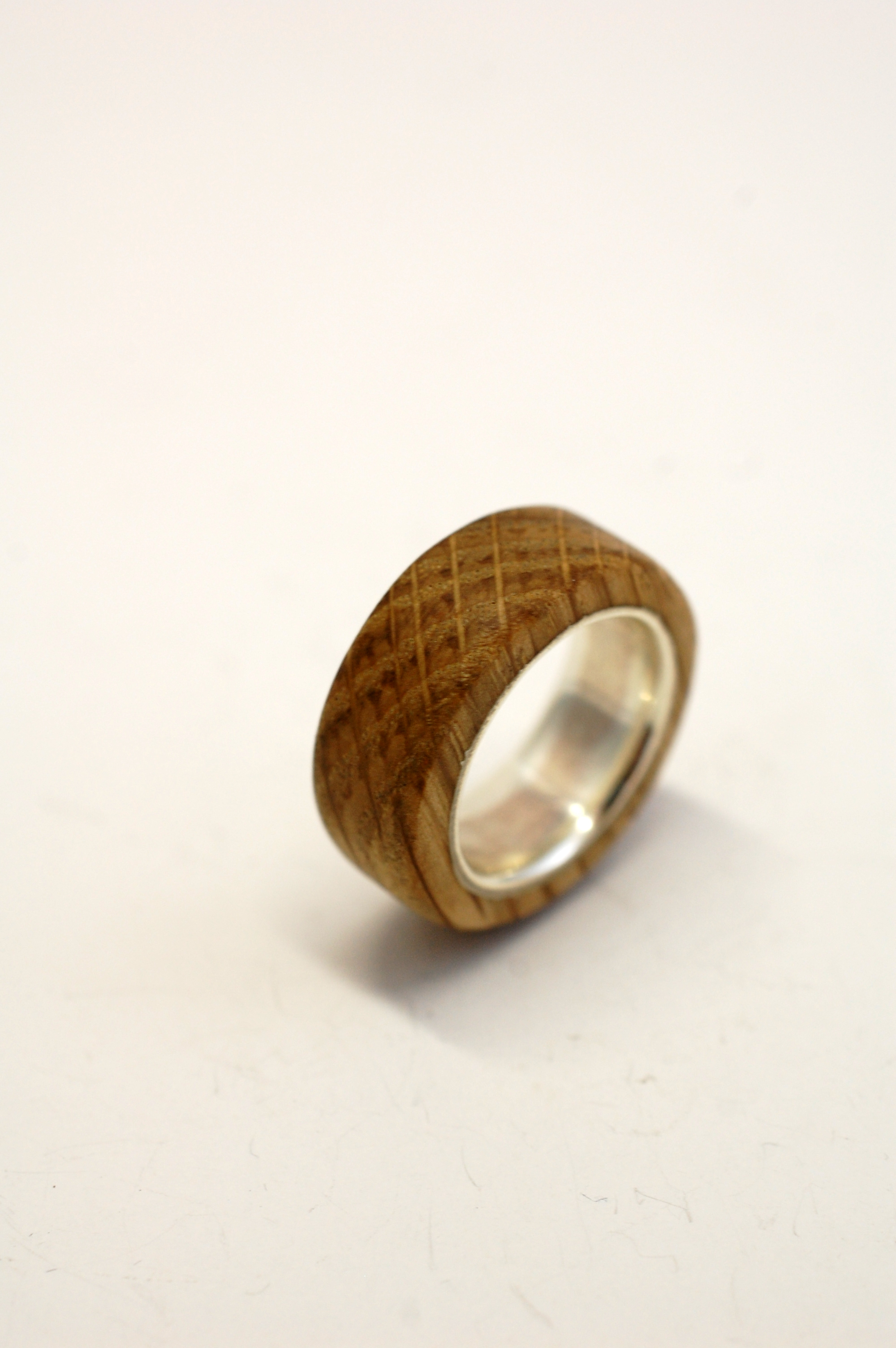 Each ring is shaped and inlayed with a sterling silver or gold sleeve. As the wood is kept rough and untouched no two rings are alike.