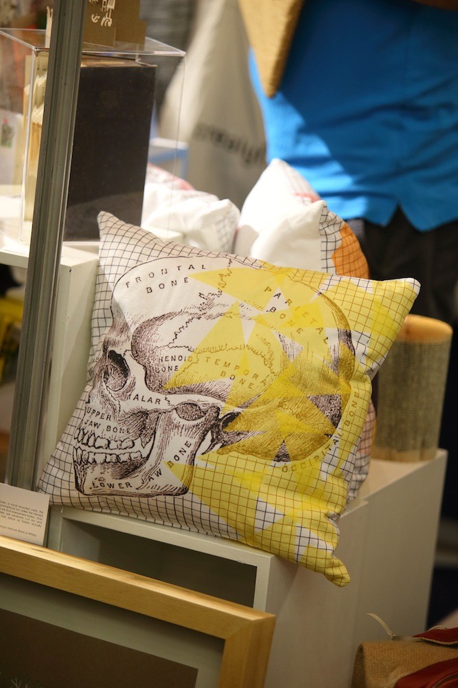 You don't have to have a morbid personality to love these bone and skeletal inspired home décor and fashion designs. Several local designers explored skeletons as inspiration and form for products in a fresh and interesting way. Keri Muller of Simple Intrigue combines the triangle trend with scientific illustration is her cushion cover, while Barbara Hudson creates artistic abstractions made from real skeletons, illustrations and photos.