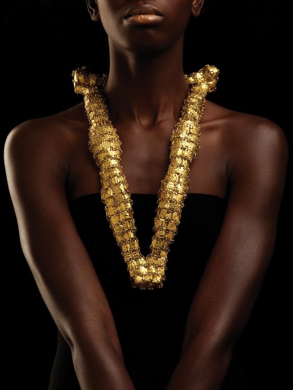 “My design intention in returning to gold is to equate the power of gold with the boldness of the design and to align myself with the ancient, venerated and powerful visual statements through Adornment in Africa,” explains Beverley. “My connecting with the pre-colonial goldsmithing and our indigenous heritage practices will, I hope, encourage other jewellers in South Africa towards making work with a new hybrid aesthetic as the other applied arts (clothing, graphics, architecture) in South Africa have already achieved.” This will create fresh design, she believes. The work is featured on the World Gold Council website from November and is available to order by commission as well as a range of jewellery in this style.