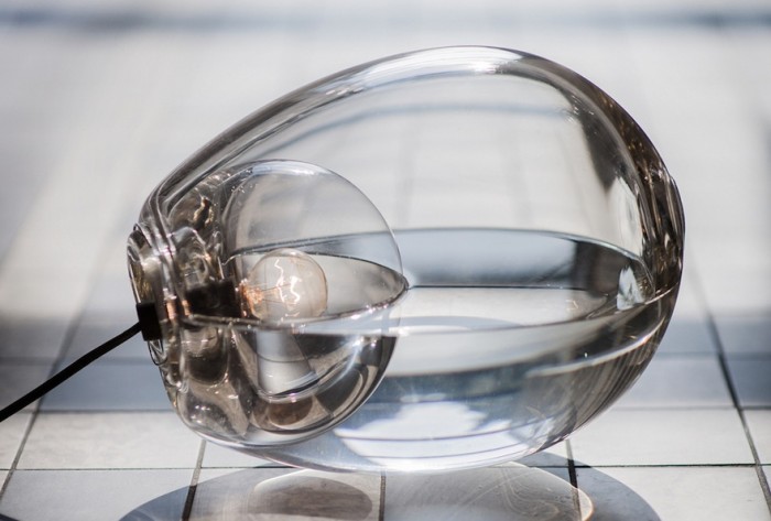The designer, who graduated with distinction from the Design Academy Eindhoven in 2014, wants to build a bridge between nature, science and design. Her Lumist is a lamp and humidifier in one born of her search for a way to use the heat lost by halogen lamps. The heat from the bulb keeps the surrounding water just under boiling point, causing it to evaporate. More water is constantly provided by the adjacent reservoir. “By capturing the contradictory traits of water and light in glass, I visualise this otherwise lost energy,” Van Dongen explains.