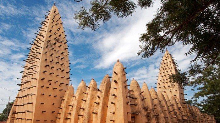 The Great Mosque of Djenne, which sits in the middle of this Malian town, surrounded by 200 homes can accomodate up to 3000 worshippers. The mosque is a world-renowned architectural icon. It towers over the town and can be seen from far away.