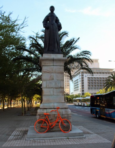 I decided to crochet two old vintage bicycles with bright orange wool and leave them as a gift to Jan and Maria van Riebeeck. Why, you ask? First, the story: The last couple of months I’ve been doing a combo of cycling / MyCiTi commuting with my fold-up bicycle from Gardens – Darling Street – Woodstock Main – Roodebloem Rd and it has changed my life. This sounds over-dramatic but it’s true. I’ve met people, shared smiles/waves and had conversations along the way that truly inspired me. I felt like I belonged in the city, I was a part of it.