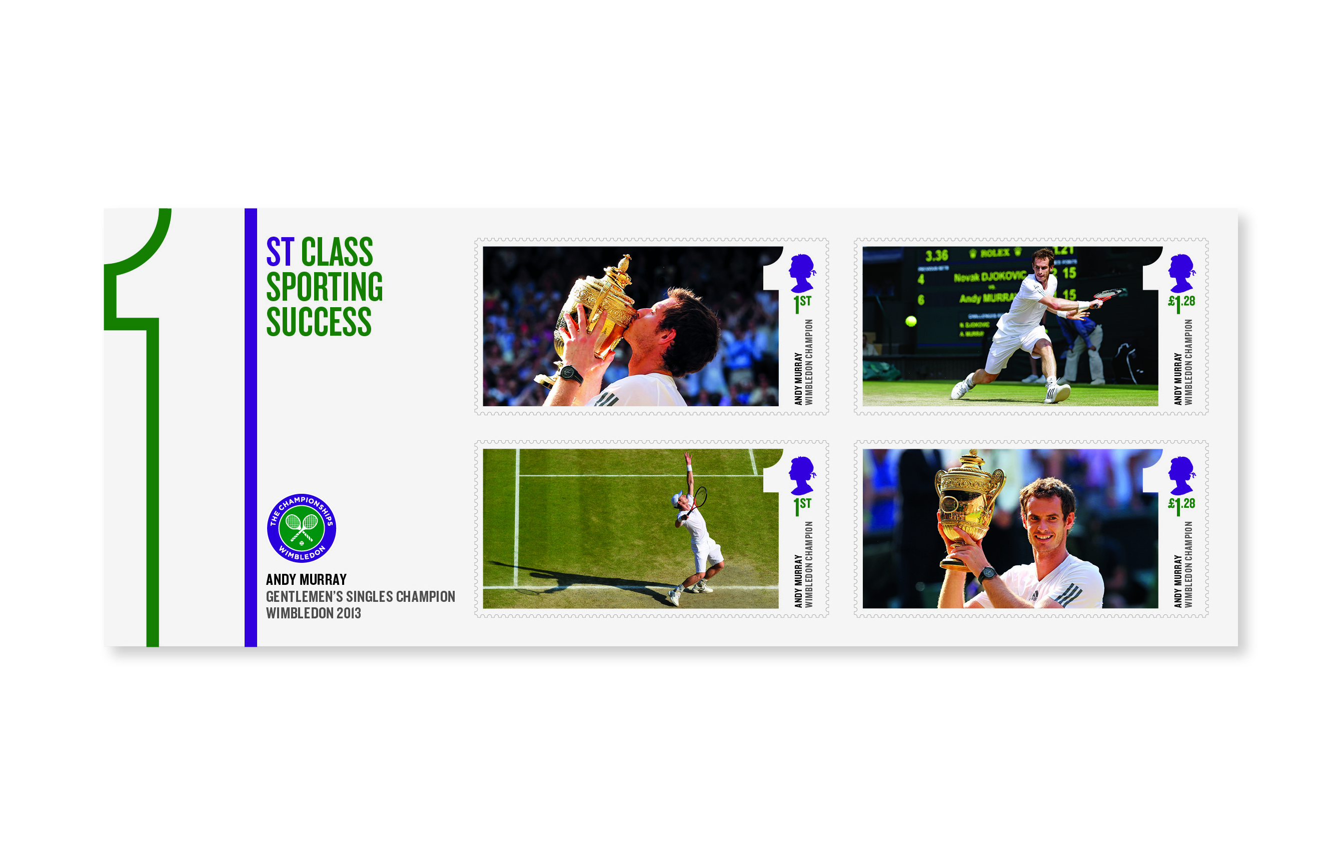 Thanks to the flexibility of the design, when Murray won it was a simple case of selecting images for the stamps.