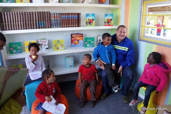With a very generous financial contribution from South African Breweries we collaborated with architect Y Tsai in using his expertise in container refurbishment on this project. While Tsai worked on the exterior of what was to become the Blikkiesdorp library, Cecile & Boyd’s contributed their interior design savvy to turn the inside of the shipping container into a warm, friendly space that is conducive to learning.