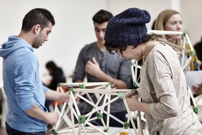 The project calls its guests together to build a modular Green Light, designed by Eliasson. The stackable lights are made entirely from sustainable and recycled materials. The designer hopes to forge a new communal environment during the process of the workshop.